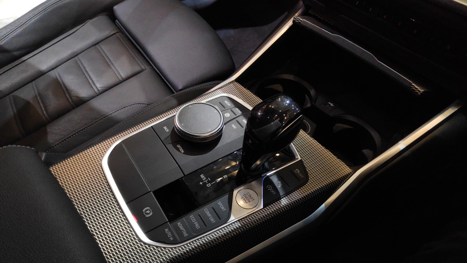 Di panel bawah ada 2 cup holder dengan penutup yang sangat rapi dan elegan. Knob Selector Ala BMW & BMW style shifter, juga ditemani dengan Start/Stop Engine, EPB with Autohold, Driving mode.