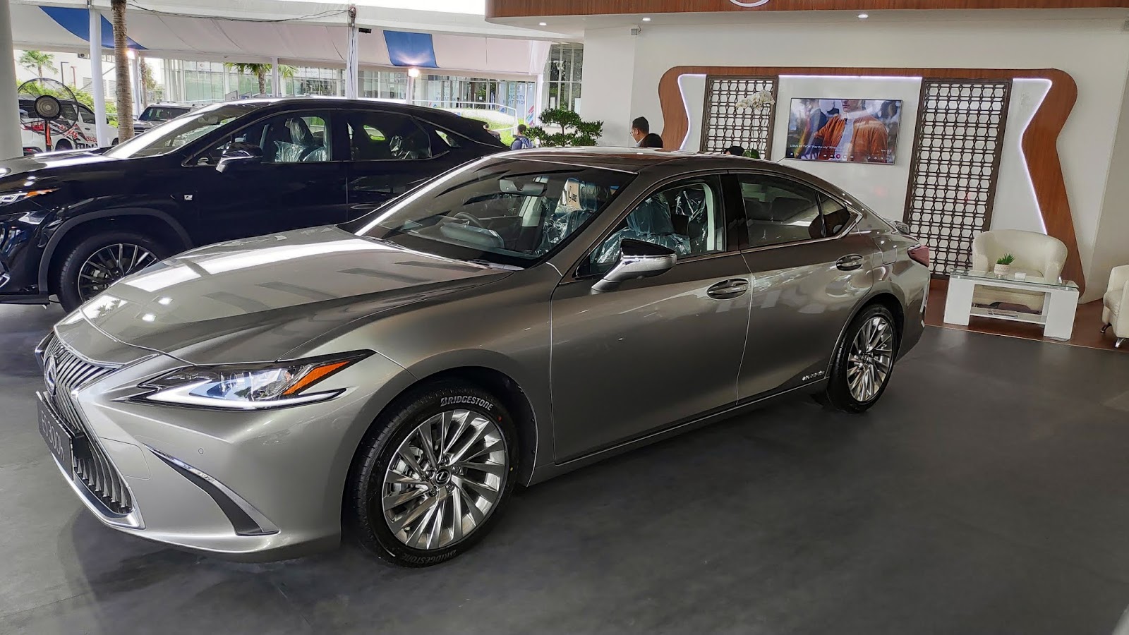 Grill-nya besar, terinspirasi dari pohon palem Indonesia. Gak hanya besar, dia juga berfungsi untuk aerodynamic yang lebih baik. Ditambah lagi logo Lexus dengan sedikit sentuhan biru sebagai penanda bahwa ini adalah mobil Hybrid dari Lexus.